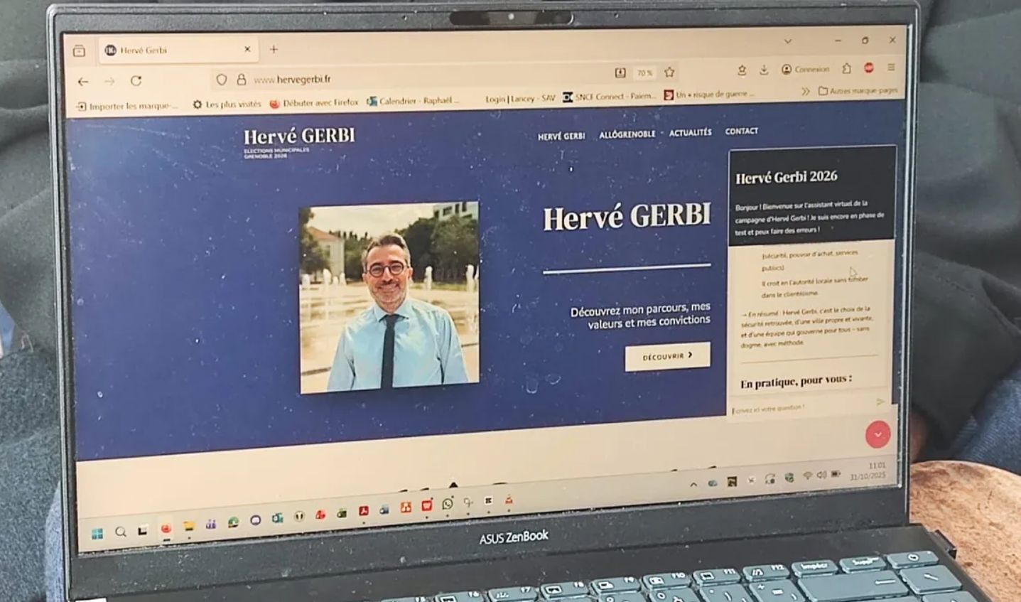 Certains ont peur de l’intelligence artificielle et des fake-news qu’elle peut engendrer. Mais Hervé Gerbi n’est pas de ceux-là. L’avocat grenoblois, candidat aux élections municipales de mars 2026, vient de lancer ce dimanche son site internet avec un robot conversationnel ou « chatbot », basé sur l’intelligence artificielle (IA). Concrètement, c’est une petite icône discrète sur la page d’accueil du site internet du candidat, qui lorsqu’on clique dessus ouvre une fenêtre de discussion. On peut alors poser n’importe quelle question sur le candidat. « On a fourni beaucoup de données à l’intelligence artificielle, des données chiffrées, des éléments du programme d’Hervé Gerbi, des interviews du candidat, cela sert de base » au robot conversationnel, explique Raphaël Meyer, chef d’entreprise engagé auprès d’Hervé Gerbi et cheville ouvrière de ce robot conversationnel. « Cela permet de faire de la pédagogie, pour tout le monde, de répondre aux questions que se posent les électeurs et ce 24 heures sur 24, un temps évidemment qu’Hervé Gerbi ne peut pas passer avec les 150 000 habitants de Grenoble« .