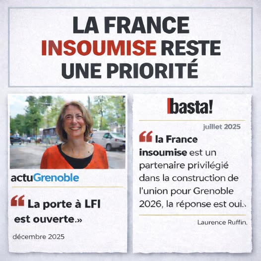 Le 22 juillet 2025, dans le site Basta! Laurence Ruffin pose une pierre d’angle qui dit tout du fond. Interrogée sur LFI, elle répond sans détour que La France insoumise est un « partenaire privilégié » pour construire l’union à Grenoble.